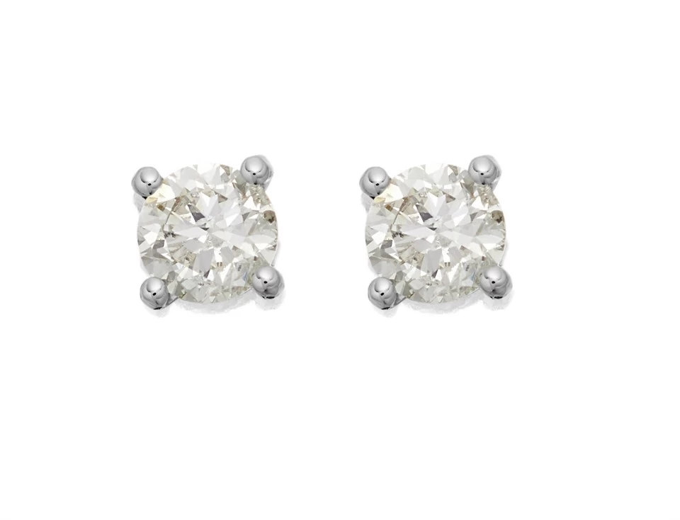 18ct White Gold Diamond Solitaire Stud Earrings – 1/2ct Per Pair – D4525