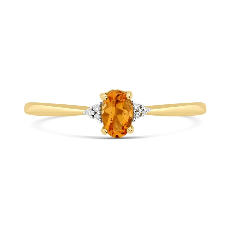 Perfect as a gift option for a November birthday, this 9ct gold ring is set with a 5 x 3mm citrine with tiny diamonds on the shoulders to add a touch of sparkle.