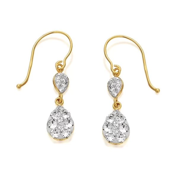9ct Gold Crystal Double Teardrop Hook Wire Earrings – 23mm Drop – G1005