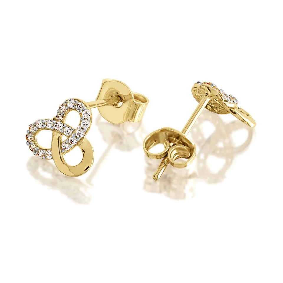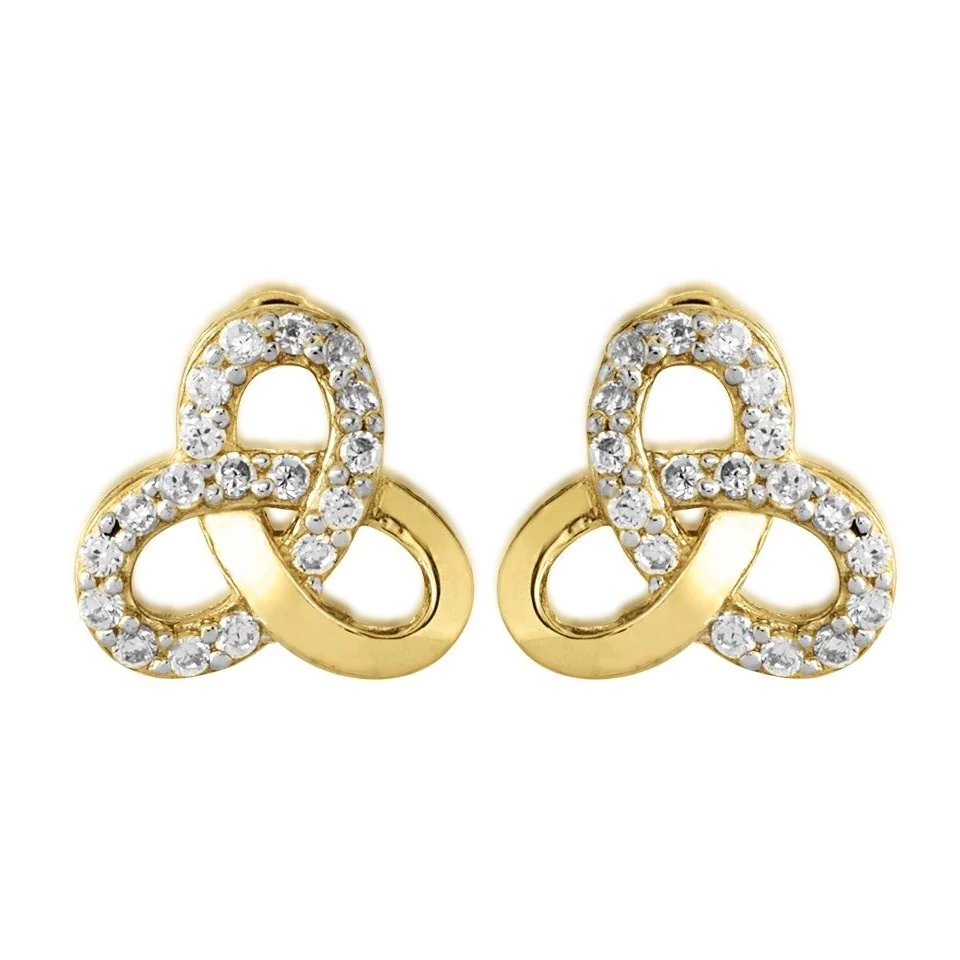 These 9ct gold celtic stud earrings are pave set with tiny cubic zirconias to add a touch of sparkle. 7mm wide and secured with gold butterfly fittings.