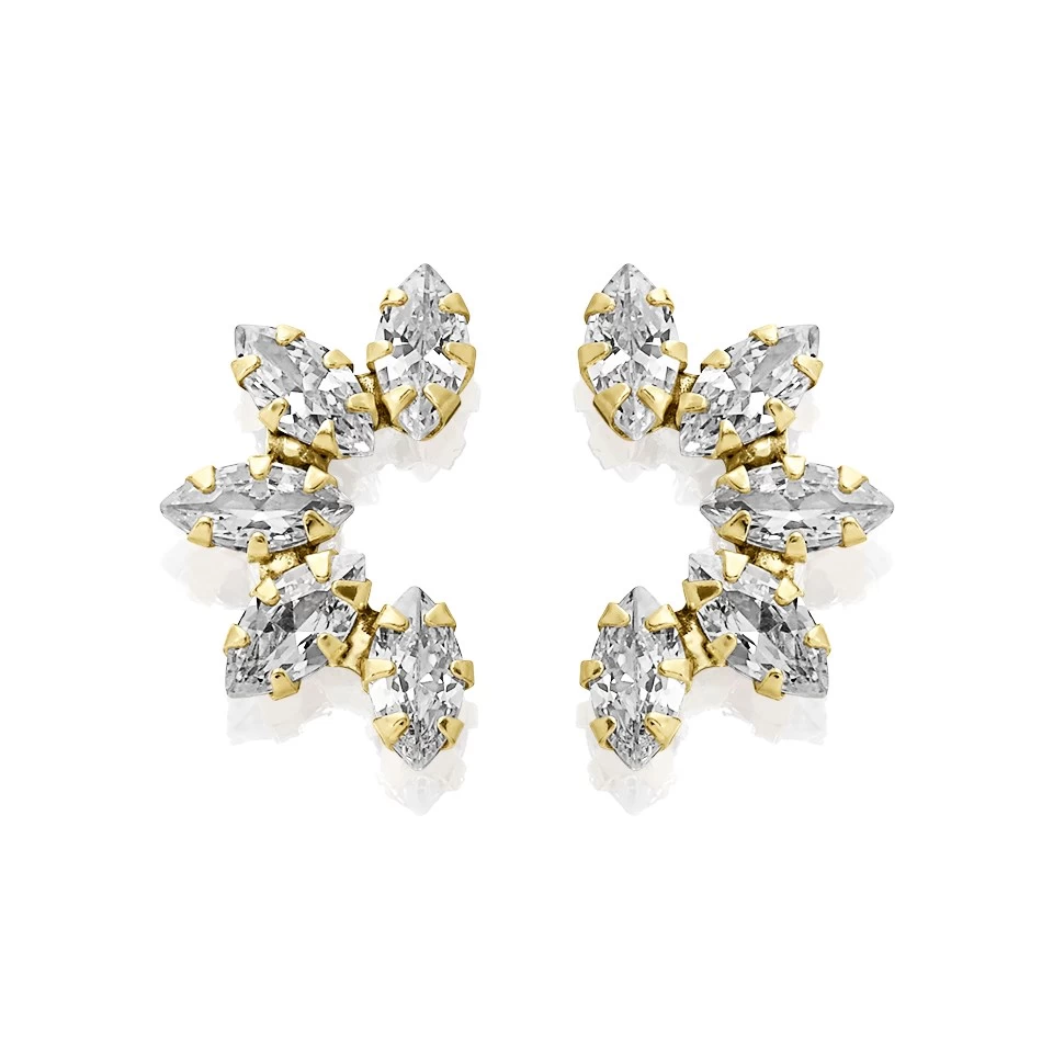 Featuring five marquise shaped cubic zirconias set in a half circle design, these 9ct gold stud earrings offer eye catching style. 14mm long.