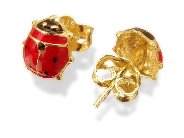 9ct Gold Enamel Ladybird Stud Earrings – G0748