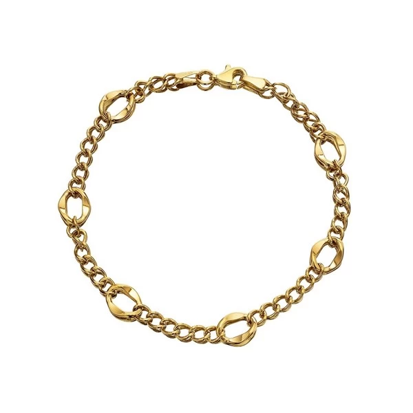 Six large chain loops are all connected by six smaller, matching loops, creating a useful base for a charm bracelet or perfect worn on its own – 7.5″/19.5cm long, finished with a karab clasp. Exclusive to F.Hinds.