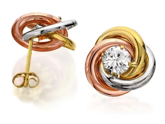 9ct Gold Three Colour Cubic Zirconia Knot Stud Earrings – 12mm – G4629