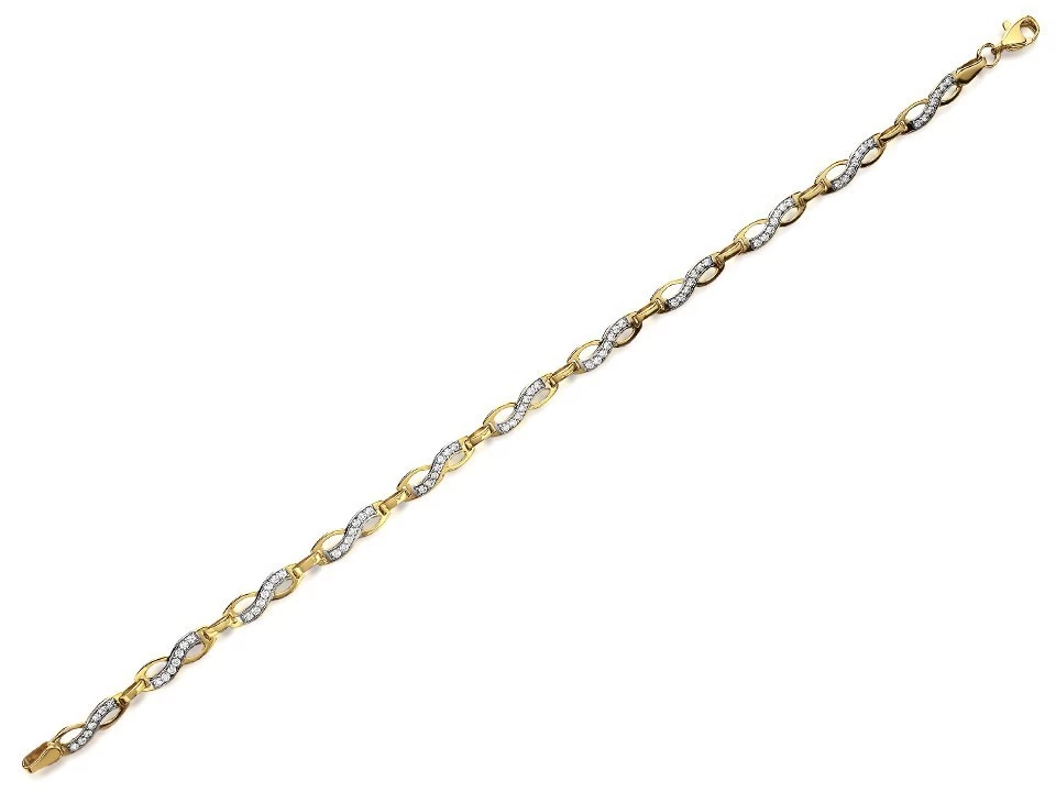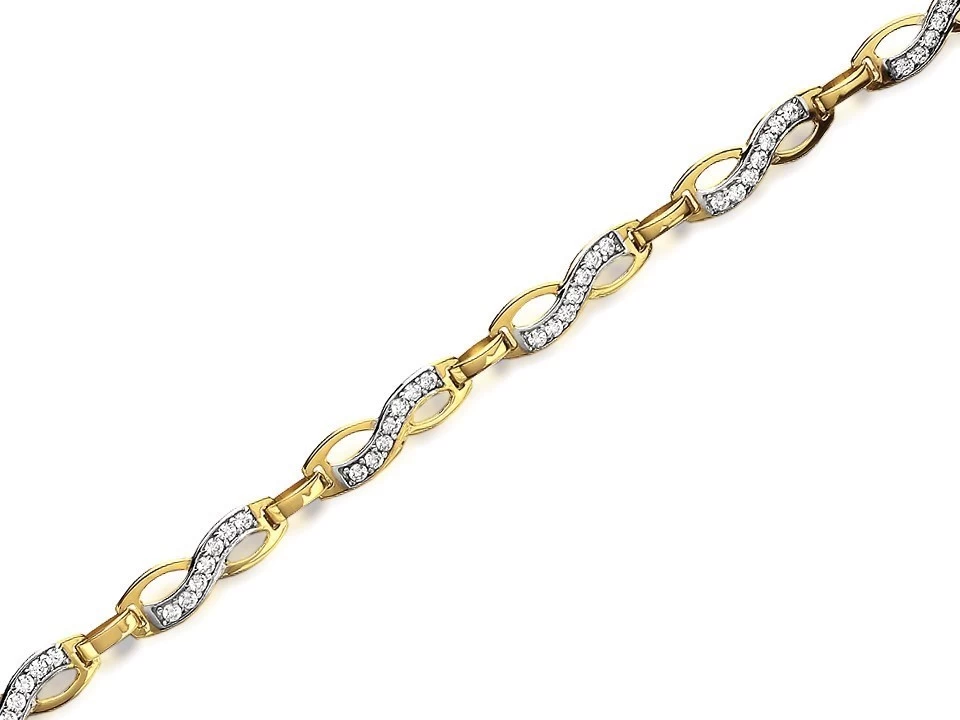 9ct Gold Two Colour Cubic Zirconia Figure Of Eight Bracelet – 7.5in – G8307