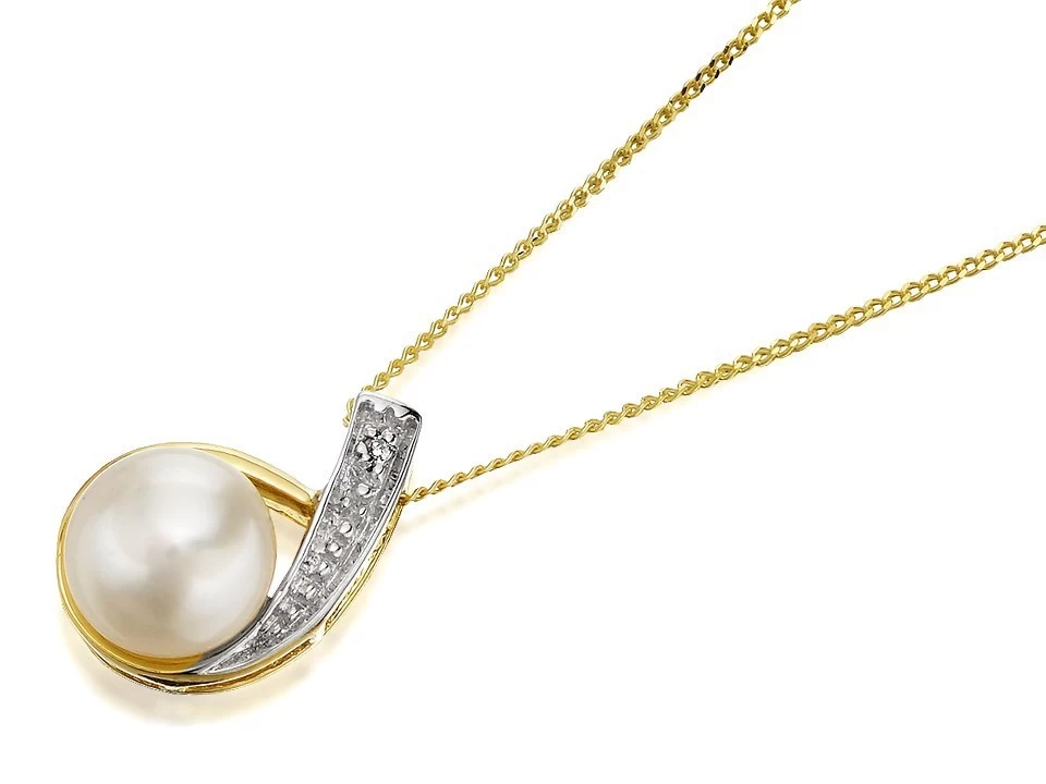 9ct Gold Two Colour Freshwater Pearl And Diamond Necklace – R7759
