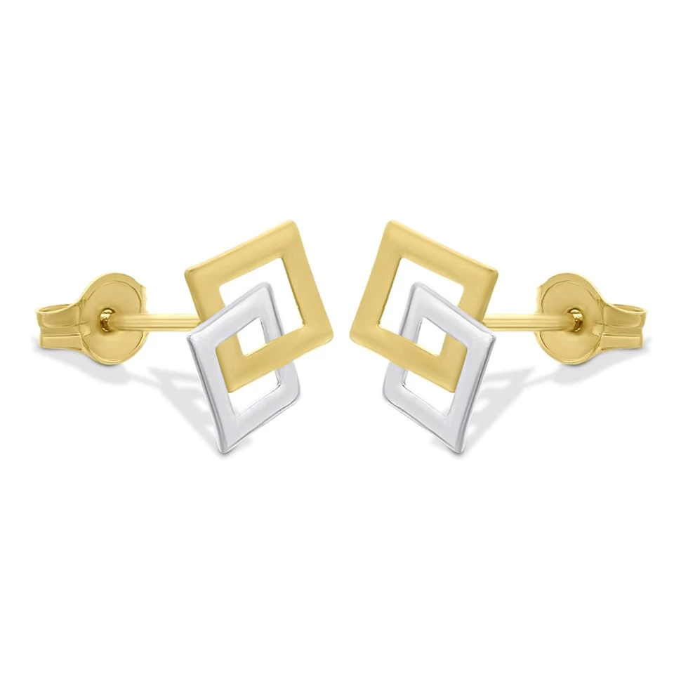 9ct Gold Two Colour Interlocking Squares Stud Earrings – 8mm – G0796