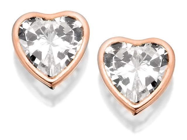 9ct Rose Gold Cubic Zirconia Heart Stud Earrings – G2759
