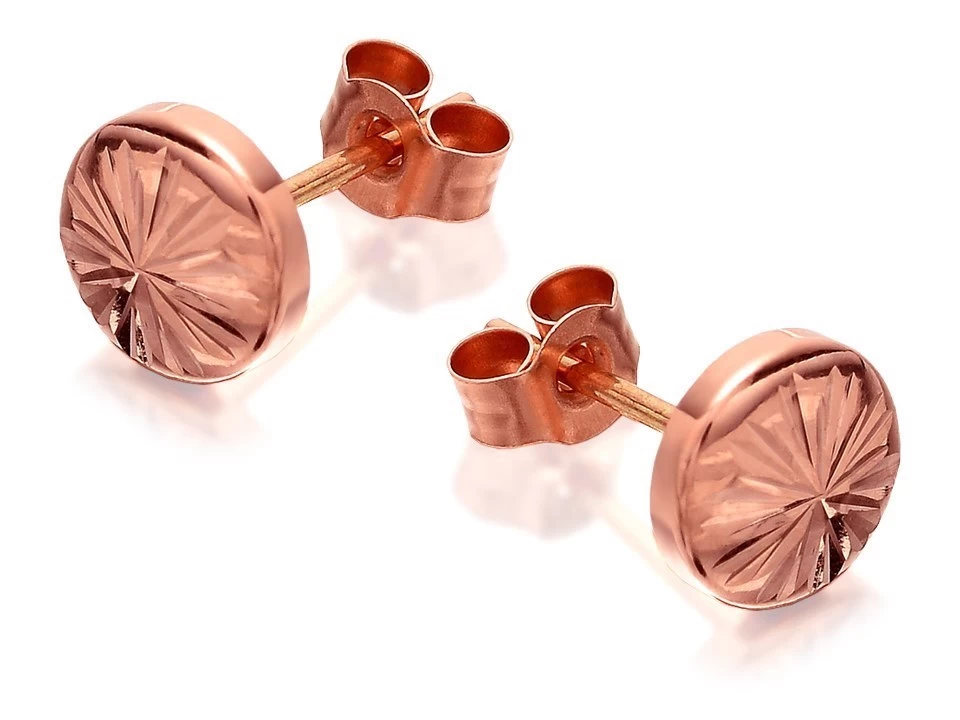 9ct Rose Gold Diamond Cut Disc Stud Earrings – 6mm – G0713