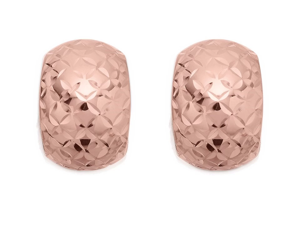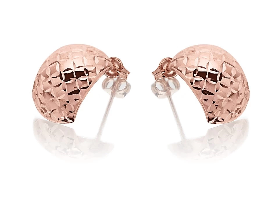 A 9 x 14mm curl in 9ct rose gold, with attractive diamond cut patterning across the face, they might be little, but they are very eye-catching.