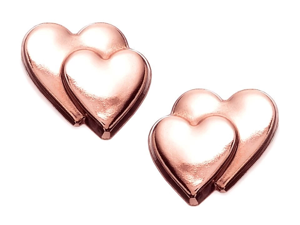 9ct Rose Gold Double Heart Stud Earrings – 7mm – G0706