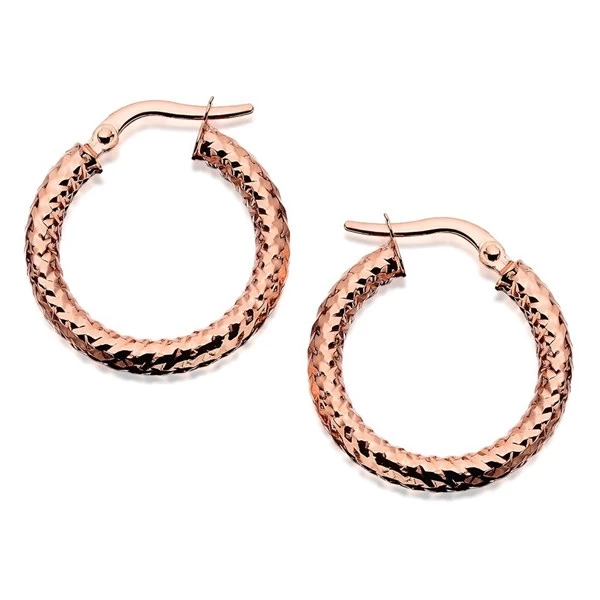 9ct Rose Gold Textured Hoop Earrings – 20mm – G2405
