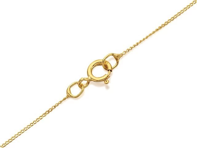 This beautifully designed and delicate 18 x 8mm pendant is created from interesting curls of 9ct yellow and white gold. The ends are set with one large and one small pear shaped blue topaz plus a diamond accent as the dew, strung from an 18″/45.5cm yellow gold curb chain.