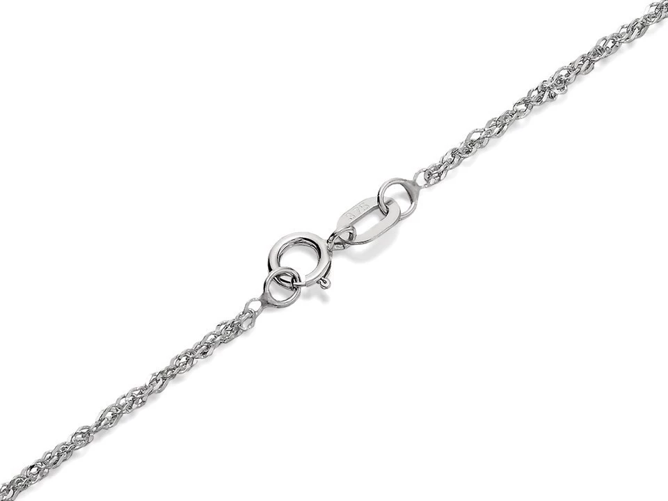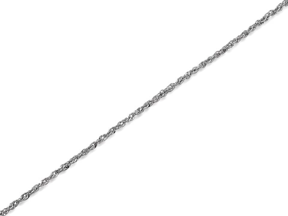 A 16in/40.5cm x 1mm wide white gold solid Singapore chain suitable for many pendants, or fantastic worn singly.