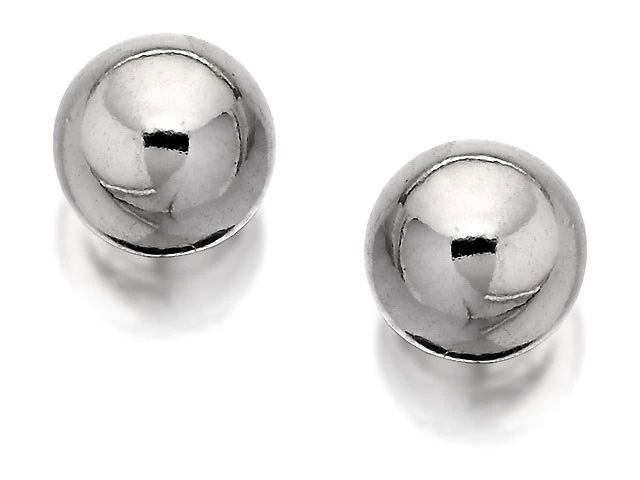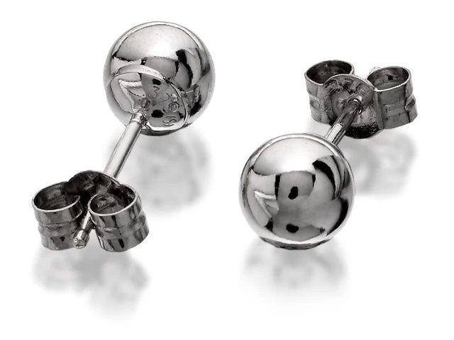 9ct white gold, 5mm classic ball earrings – will look good singly, doubly or in a line up with other earrings.