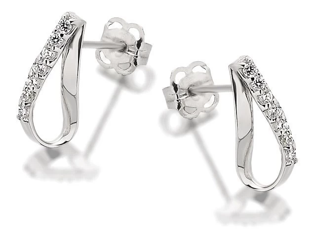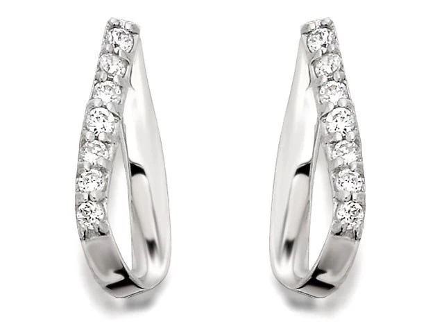 9ct White Gold Cubic Zirconia Flattened Loop Earrings – 10mm – G2754