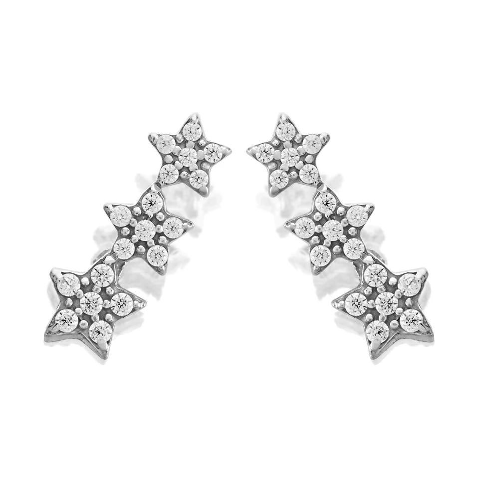 Three stars set with cubic zirconias give these 11mm long 9ct white gold crawler stud earrings a modern look. Finished with white gold butterfly backs.