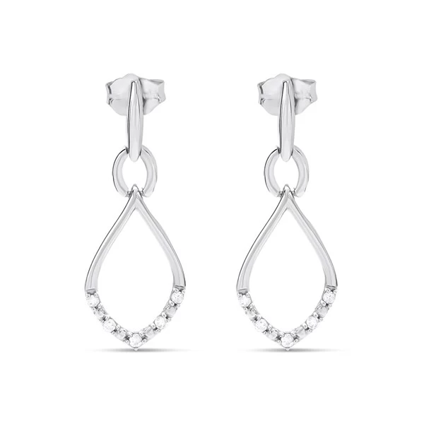 9ct White Gold Diamond Open Teardrop Earrings – 10pts Per Pair – D94105