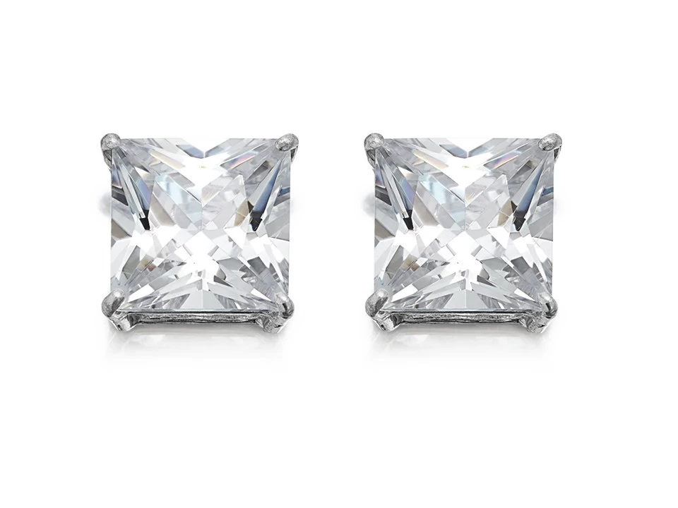 The raised white gold settings allows all the available light to set off these 7mm square cubic zirconia earrings at their best, and many would not be able to tell whether they were diamonds or not. An inexpensive alternative to take on holiday perhaps.