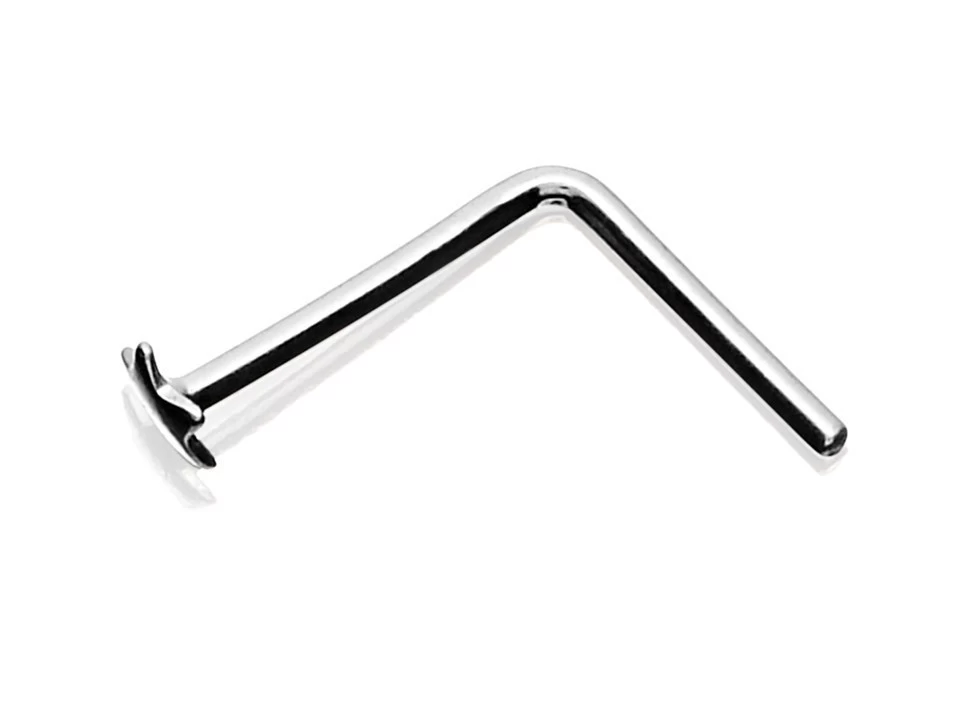 A very cute, 2mm white gold star lies at the end of an L shaped bar. A delicate and elegant nose stud that looks great when worn.