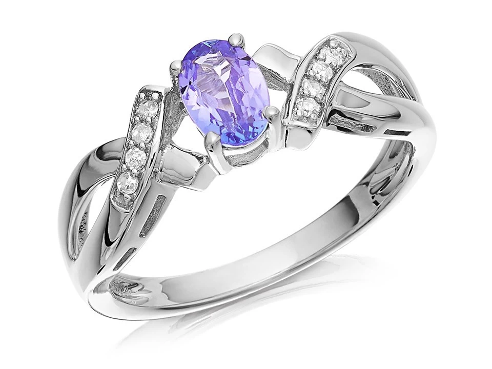 9ct White Gold Tanzanite And Diamond Kiss Ring – 4pts – D7936