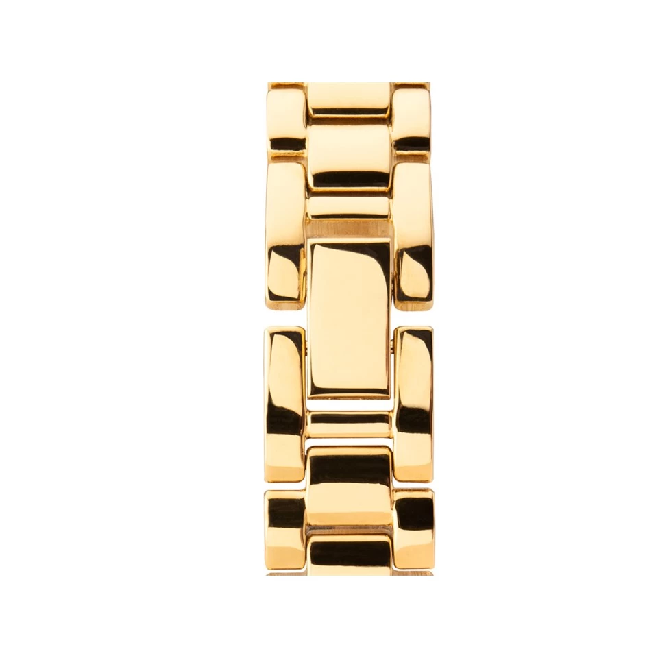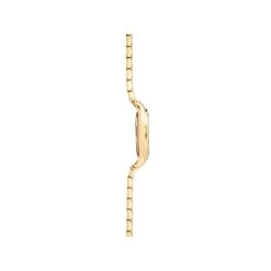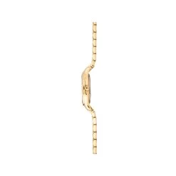 This eye-catching ladies watch from Accurist features a 28 x 7mm gold plated stainless steel backed case with a stone set bezel. The white dial has black roman numeral hour markers and gold tone hands and the 12mm half stone set bracelet has a folding snap clasp.