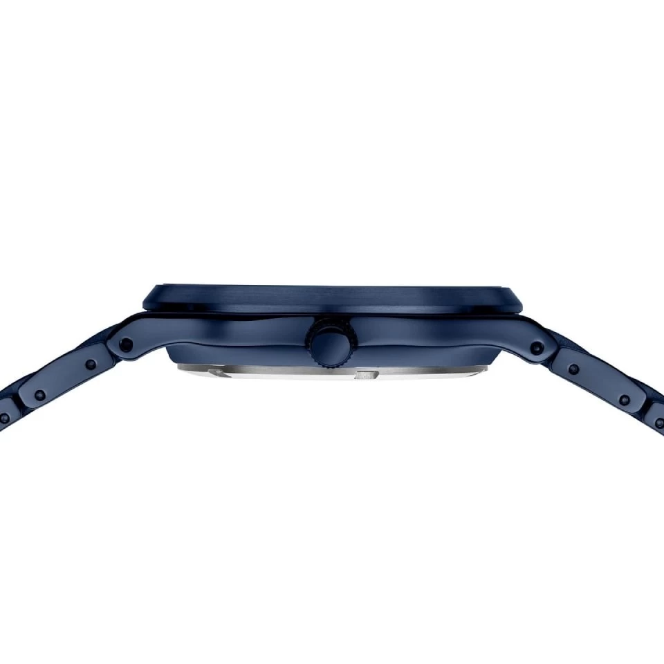 Featuring a blue titanium case and bracelet, this men’s Solar watch from Bering offers a different timepiece option. The 39 x 9.5mm case houses a matching dial with silver hour markers and hands with a feature orange second hand. There is also a date display window. Finished with a 21mm blue titanium strap with double push button folding clasp and 100m water resistant.