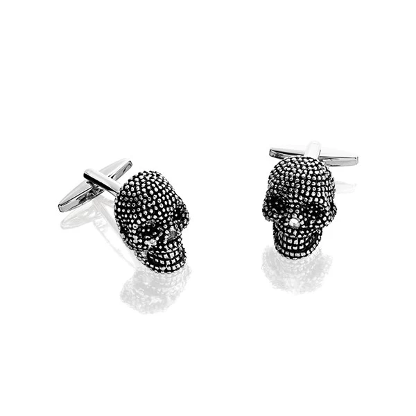 Great for that gothic or Steam Punk look, these three dimensional cufflinks combine black enamel over a rhodium plated base to create the contrasting detail.