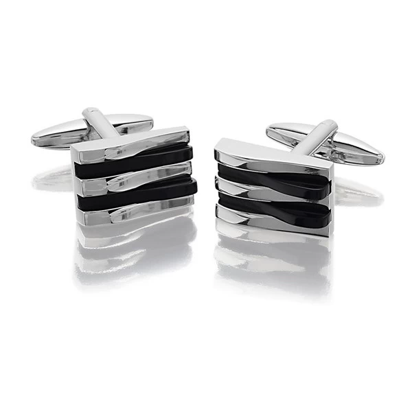 A double inset of black onyx matched with three silver tone together create a five wave design for these striking 20 x 10mm swivel cufflinks.