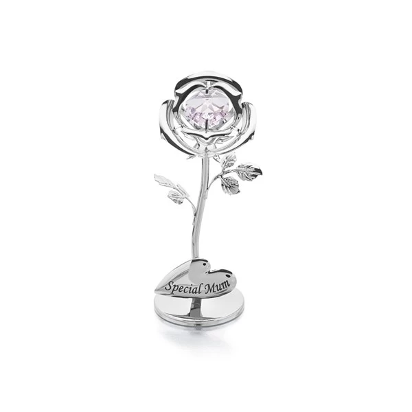 Ensure your loving message to your mum lasts forever – the 9cm tall, free standing ornament features a pretty pink crystal at the centre of the rose, with silver tone petals and stem leaves.