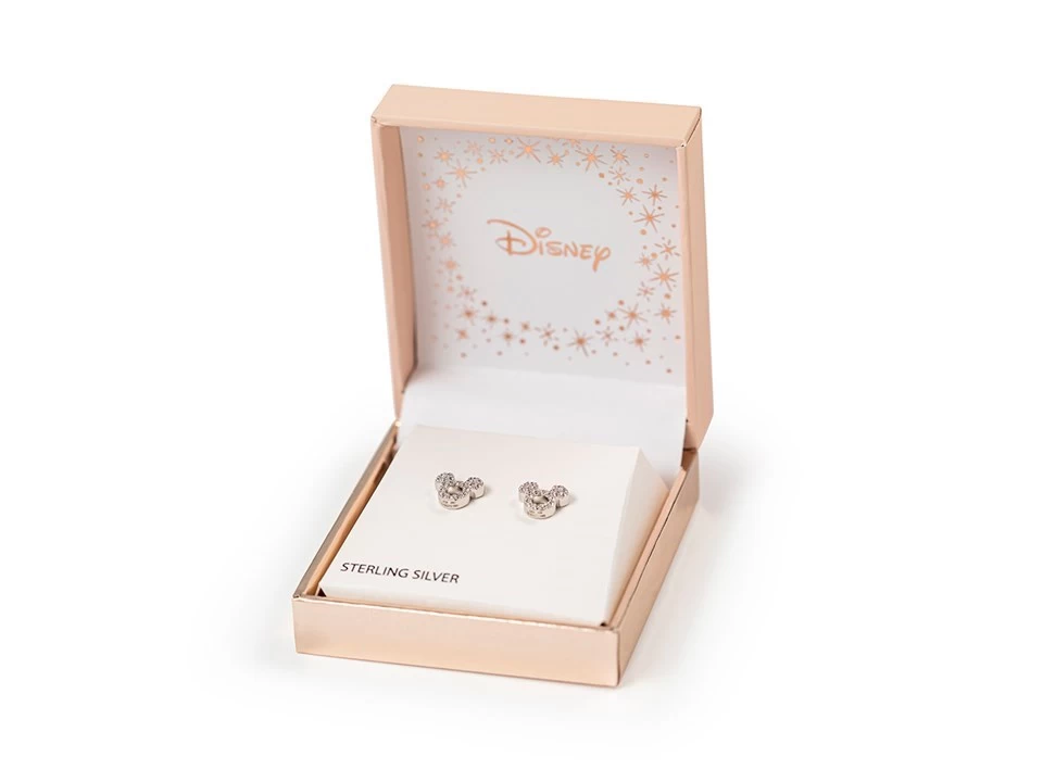 These official Mickey Mouse stud earrings with double notch posts are the perfect gift for any Disney or Mickey Mouse fan! Studs measure 9 x 8mm and are secured with silver butterfly scrolls. Packaged in an official Disney gift box.
