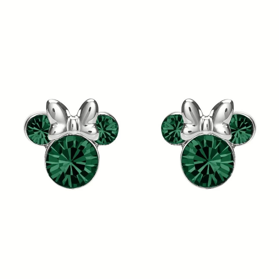 Disney Silver Minnie Green Crystal Birthstone Stud Earrings – May – F6779