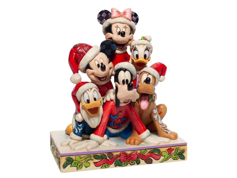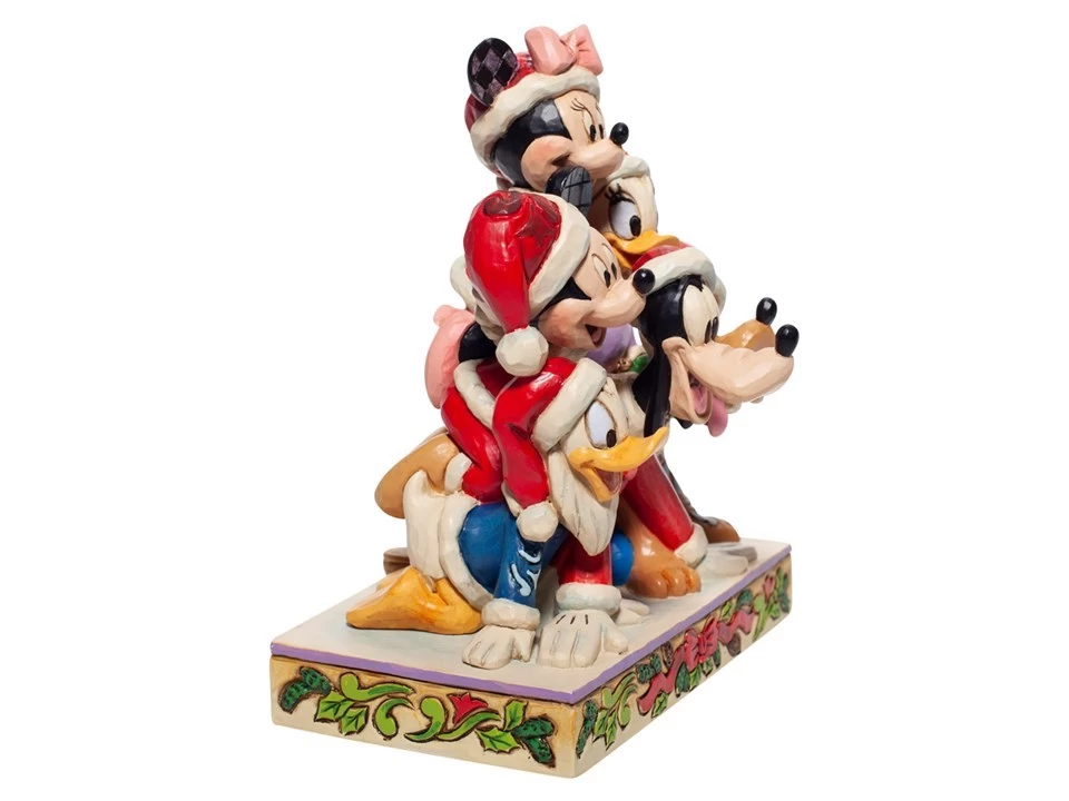 Stacked in a holiday pyramid, Mickey and pals savor a day in the snow. Each wearing a Santa hat, they’ve discovered the meaning of Christmas and enjoy jolly laughs surrounded by friends. Jim Shore creates a scene sandwiched with nostalgia and love. Measures 15 x 9 x 13cm.