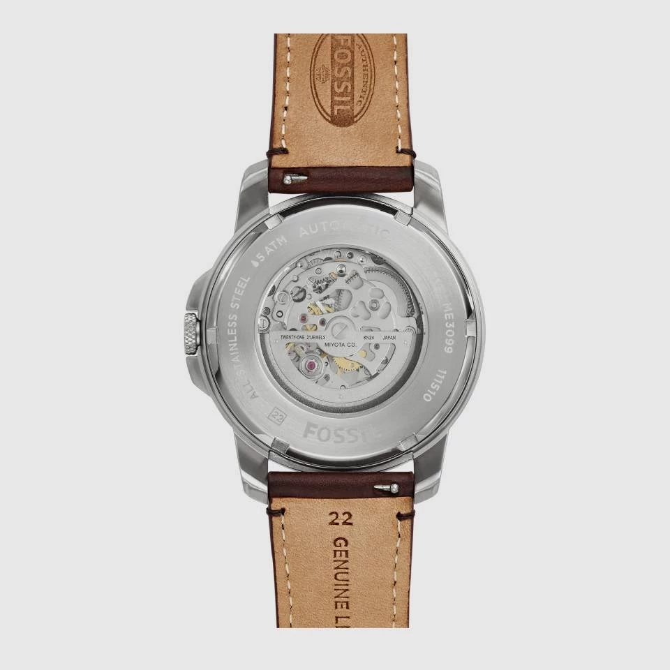 Fossil ME3099 Grant Automatic Skeleton Brown Leather Strap Watch – W10168