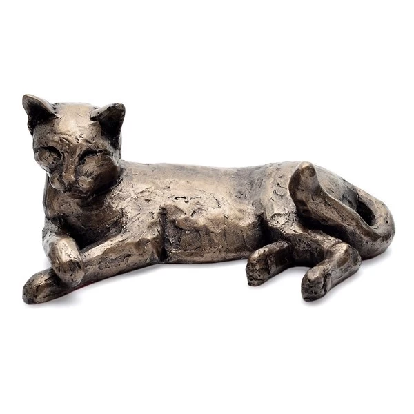 These detailed, bronze effect sculptures realistically depict animal interactions, this piece shows a a relaxing cat, paws croseed. Approximate length 16cm.