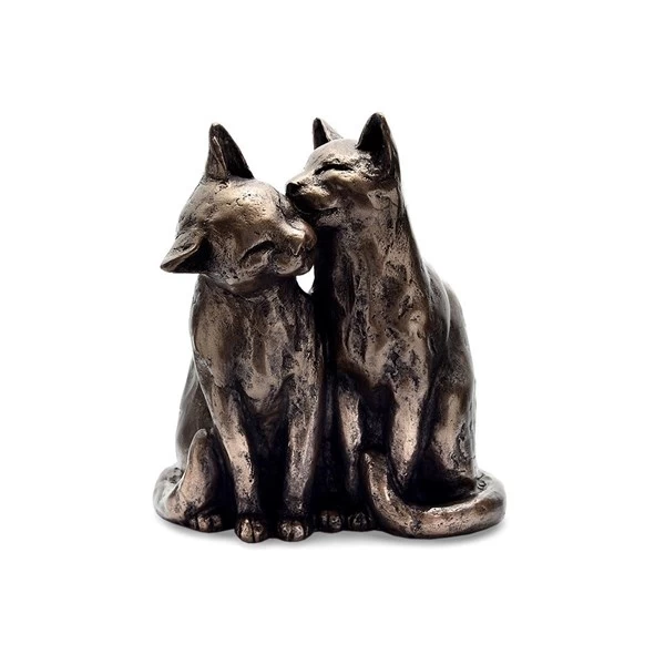 These detailed, bronze effect sculptures realistically depict animal interactions, this piece shows one cat licking another. Approximate height 14cm.