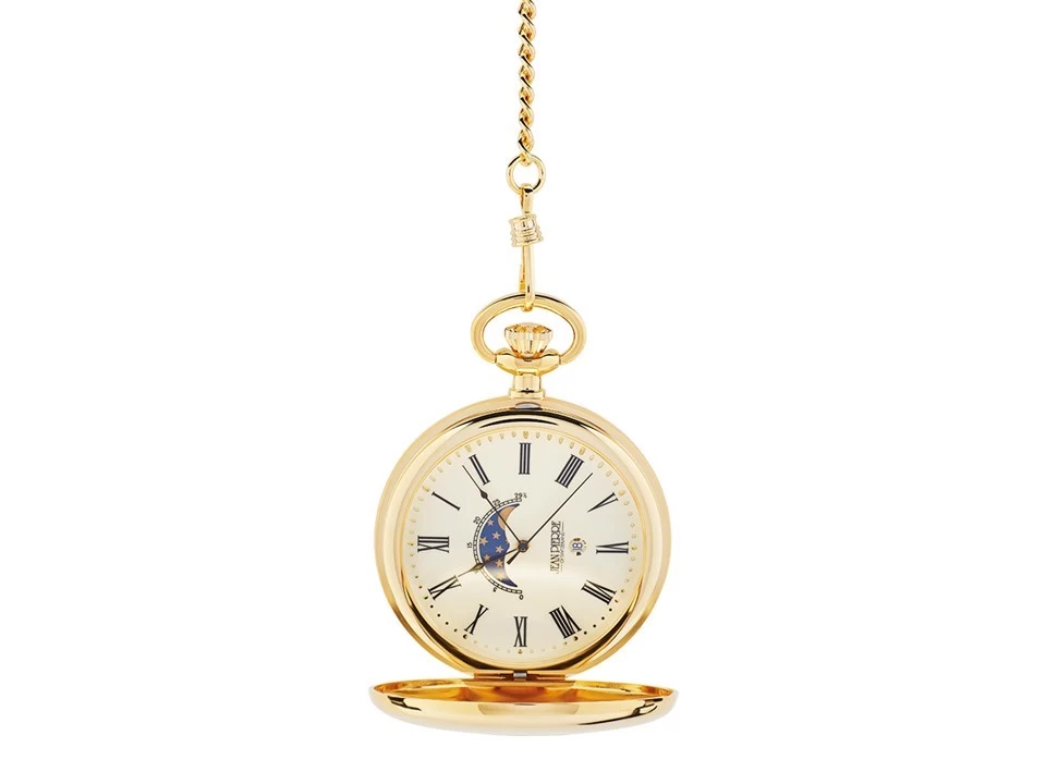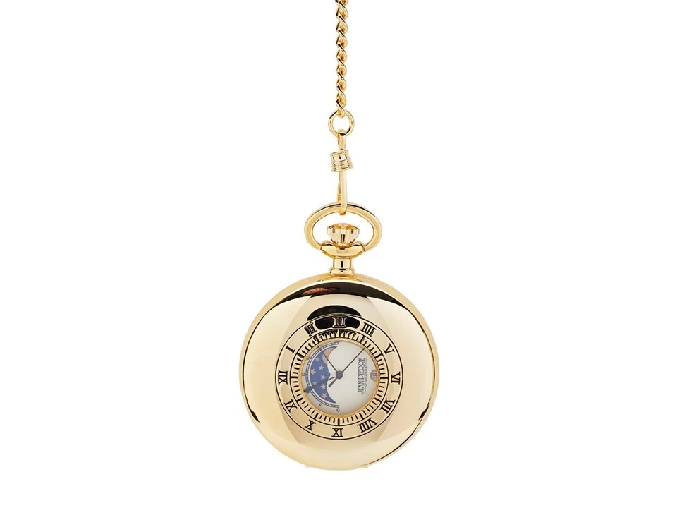 Jean Pierre G300P Gold Plated Half Hunter Moon Phase Pocket Watch And Chain – W2386
