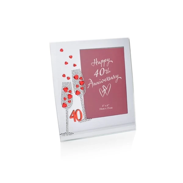 The champagne bubbles are popping with red heart crystals in celebration of a 40th anniversary, with space to store a 4″/10cm x 6″/15cm photograph of that special day within this 17 x 20cm, free-standing photo frame.