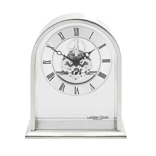 A stunning glass mantel clock from the London Clock Company featuring black roman numerals and a skeleton dial. A great timepiece to display at home. Measures 14 x 12 x 6cm.