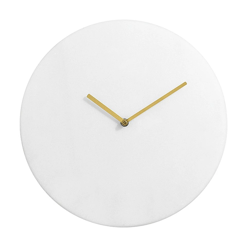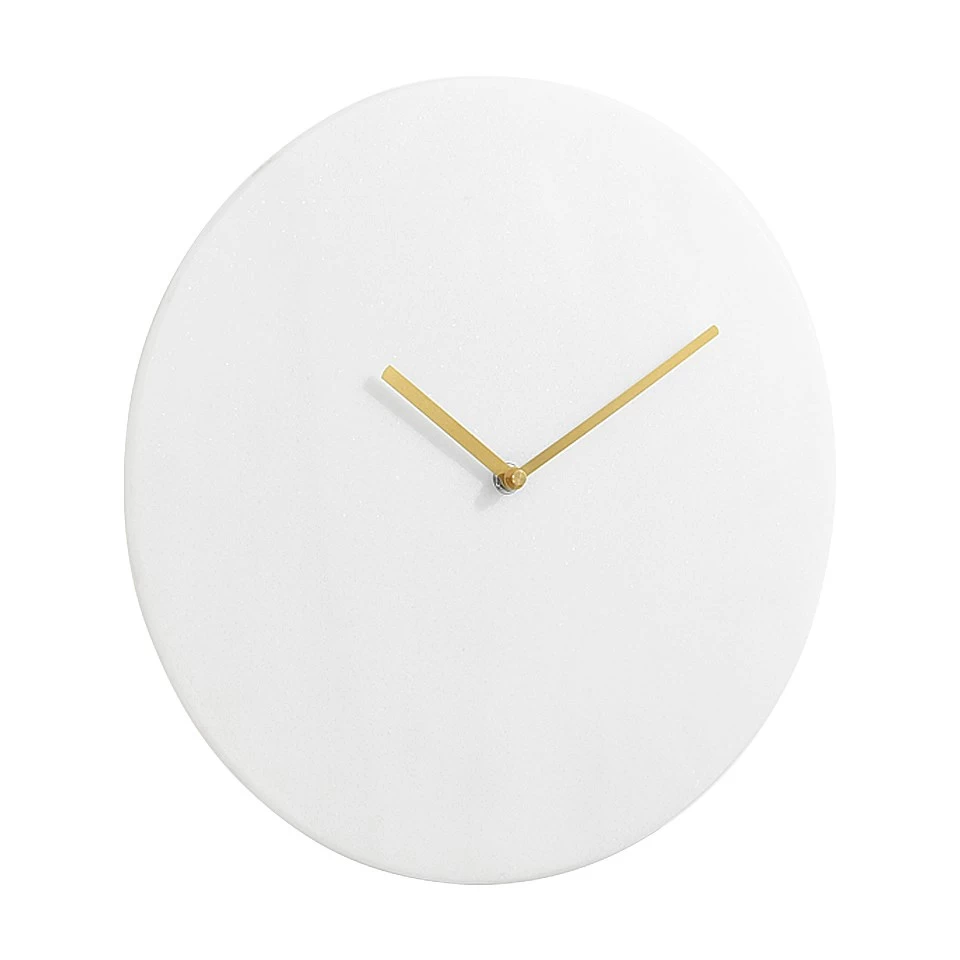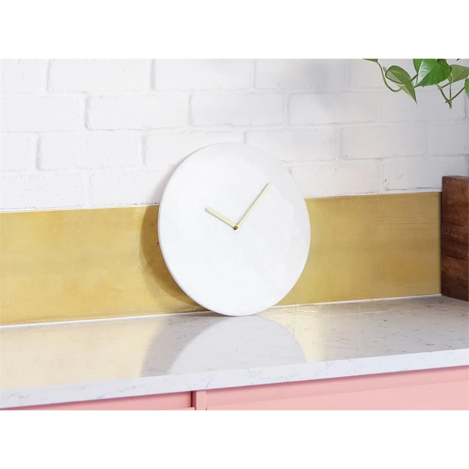 This stunning London Clock wall clock boasts an on-trend minimal design and is crafted out of solid white marble and features delicate silver flecks. The clock is contrasted by the chic brass hands which bring a touch of sophistication. Powered by Quartz battery movement, this real marble clock is ideal for both home and office use. Measures 35 x 3.5cm.