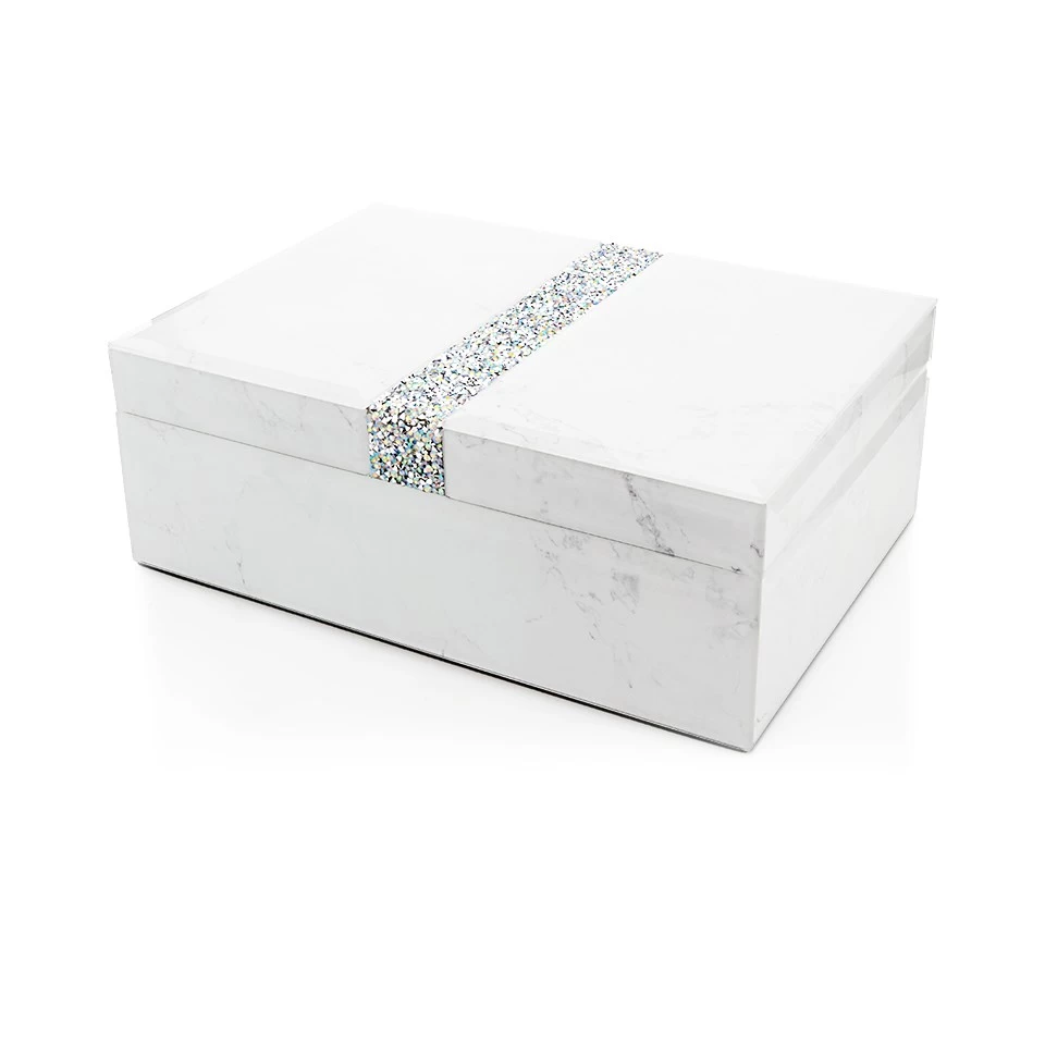 Mele & Co Large White Marble Effect Glitter Jewellery Box – P56163