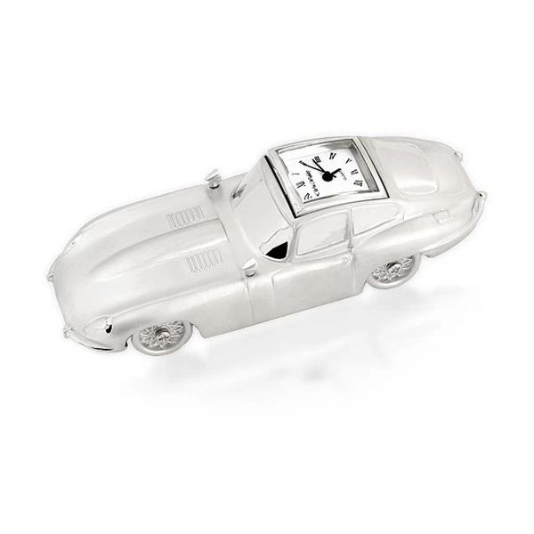 Aspiring E-Type Jaguar owners would love this miniature quartz desk clock. Black roman numerals, hour/minute/second hands.