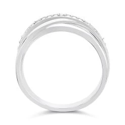 An easy to wear, 6mm wide sterling silver crossover band ring from the F.Hinds My Diamonds collection featuring a diamond set row to add a touch of sparkle. 6pts total diamond weight.
