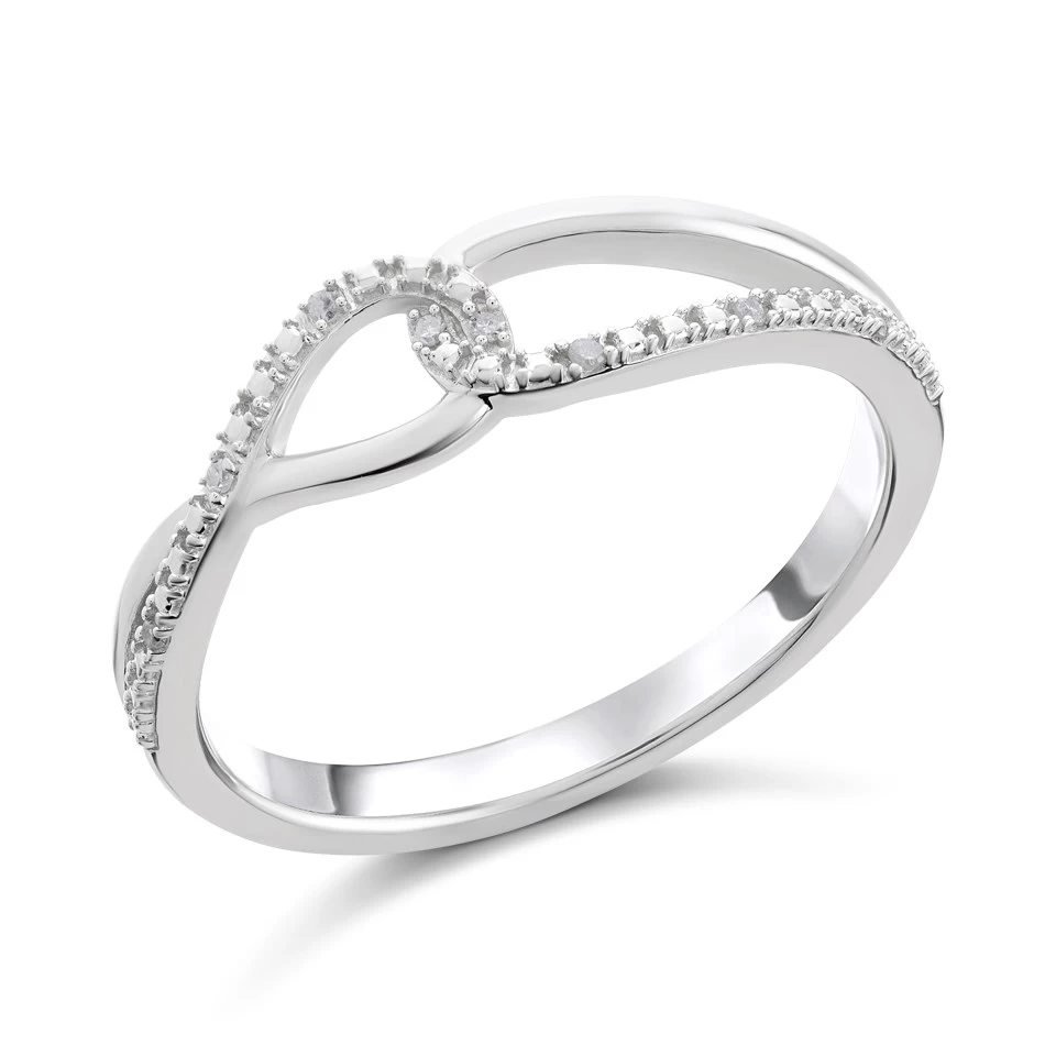 From the My Diamonds collection, this pretty, 5mm wide sterling silver ring features an entwined loop design set with precious diamonds.