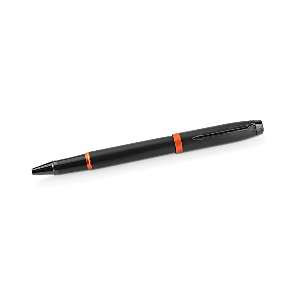 Designed with the modern professional in mind, this functional, smart and polished Parker IM Vibrant Rings rollerball pen is sure to stand out in any workplace. By pairing all-black sleek and minimalist finishes with bold, flame orange vibrant ring accents, it’s a luxury pen that knows how to make a great first impression.