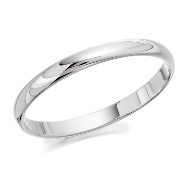A lovely 2mm wide D shaped wedding ring in luxurious platinum 950. Made in the UK.