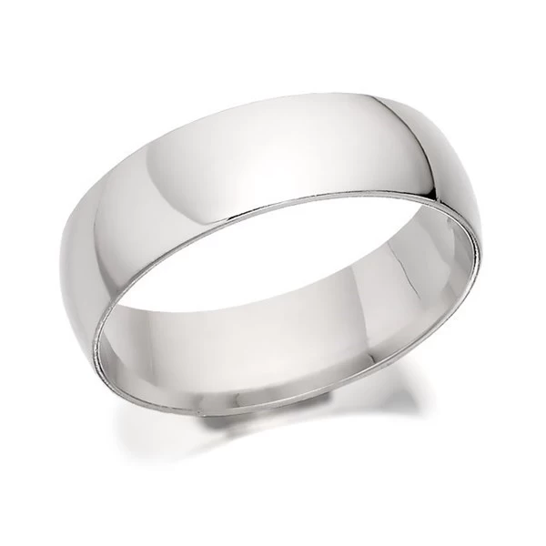 A classic, 7mm wide D shaped wedding ring in platinum 950. Made in the UK.