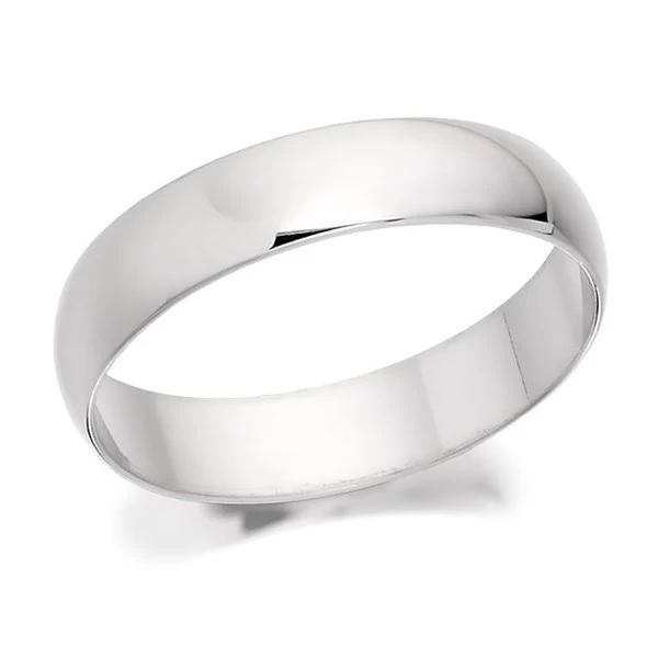 A classic, 4mm wide D shaped wedding ring in platinum 950. Made in the UK.