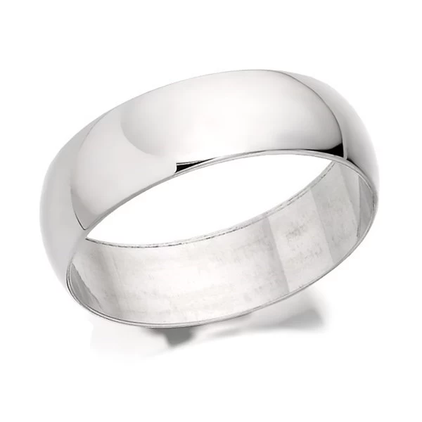 A classic, 6mm wide D shaped wedding ring in platinum 950. Made in the UK.