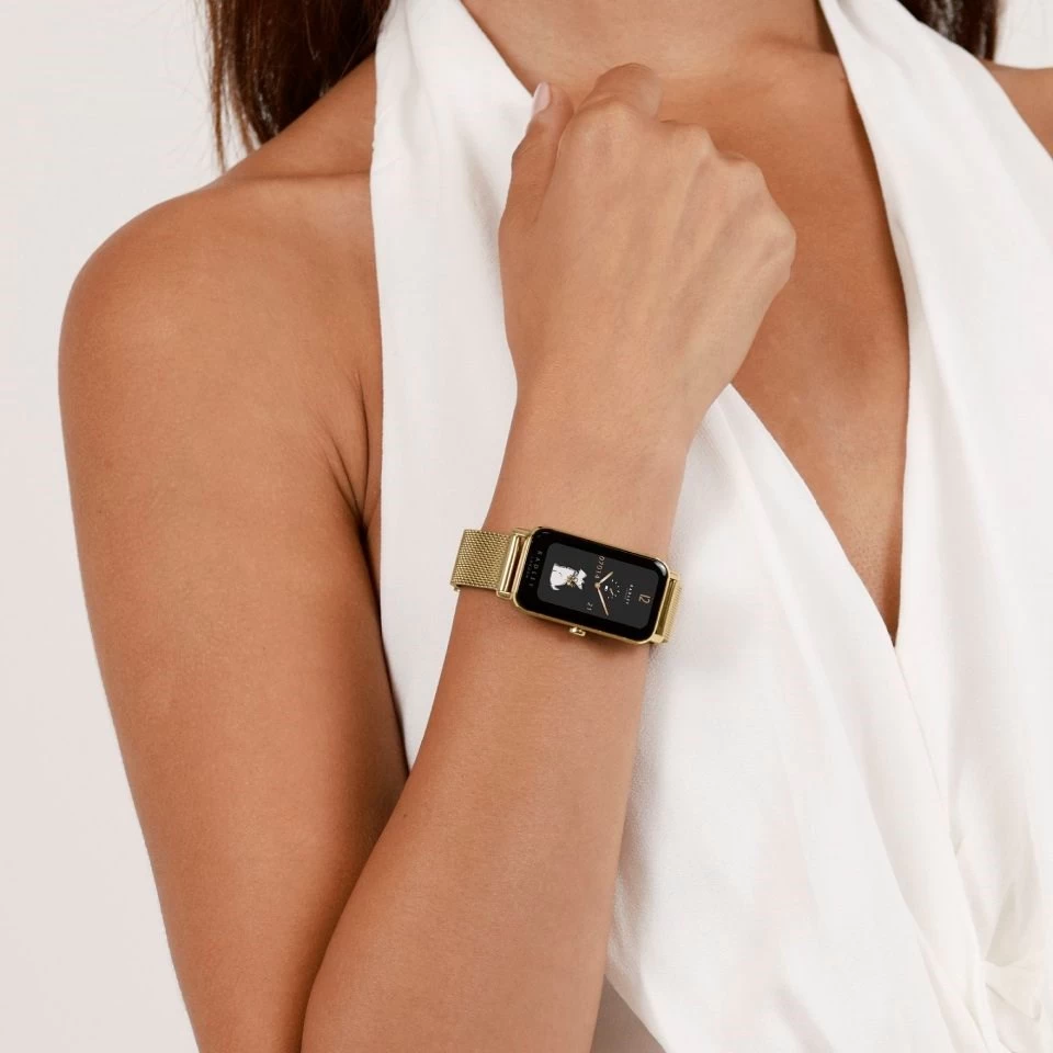 This Radley London Series 21 smartwatch is perfect for those who lead an active lifestyle. It comes with a range of features that make it the perfect watch for all daily activities, including great wellness features such as sleep analysis, hydration reminders and breathing exercises. The Radley Series 21 is your perfect training partner, with the heart rate monitor, fourteen different sports tracking modes and music control. You can track your fitness progression through the Radley App. Set your goals and smash them! With the ability to change dials and have your own photos as a background, you to customize your watch and make it your own. This Radley smartwatch boasts a 22mm gold lozenge shaped case and gold mesh strap. Each watch is packed in a Radley London presentation gift box complete with instruction manual, USB charger (sealed rechargeable battery) and a 2-year manufacturer guarantee. Download the free Radley Active App now to explore in more detail. IOS & Android compatible.